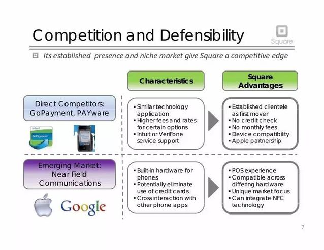 6. 竞争分析:市场规模有XX这么大,这是我们可以获得的市场规模。这个市场每年增长XX%。这是我们相比竞争对手如何进行市场定位。