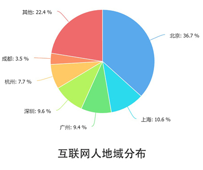 互联网行业是一个高度集中在一线大城市的行业。北上广深杭承包了全互联网3/4的从业者,其中北京一座城市就容纳了全网36.7%的从业者。