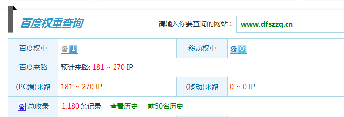 网站刚接到手的时候,流量只有十几个,接近于无,通过对网站的不断更新调整,现在流量已经稳定在200以上了,随之而来的,是对爱站br的提升,权重1不仅仅代表着流量的上升,更代表着网站着实给客户带来了实际的效益。