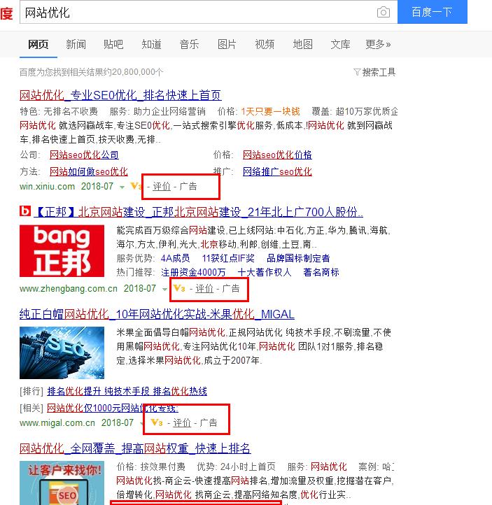 一般来说,广告商在投放关键词广告时,必然已经做了详细的竞争程度分析及赢利分析,只有能产生效果和赢利的关键词,他们才会去投放广告。如果说搜索结果数还只是网上内容数量带来的竞争,竞价数则是拿着真金白银与你竞争的真实存在。竟价结果数量直接就反应了关键词商业度的高低,商业度越高的词势必竞争者越多,相应优化难度也会更大。