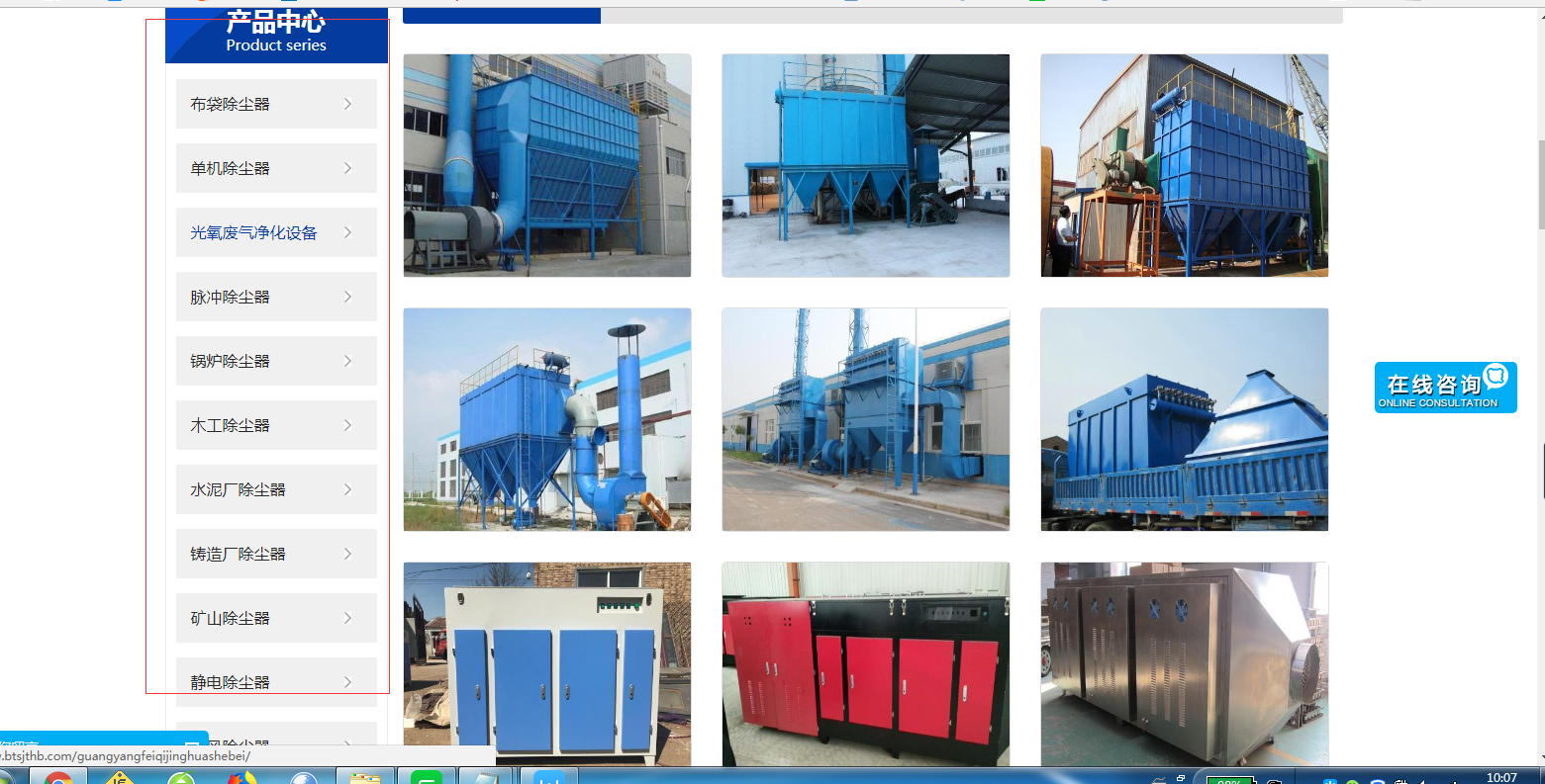 泊头市金泰环保设备有限公司主营产品:布袋除尘器,单机除尘器,光氧废气净化设备,脉冲除尘器,锅炉除尘器,木工除尘器,水泥厂除尘器,铸造厂除尘器,矿山除尘器,静电除尘器以及各行业专用除尘器,另外我公司还生产除尘布袋,除尘骨架,运输设备,星型卸料器等百余种规格除法设备及其各种配件。并按ISO9001国际质量体系标准建立了从设计、开发、生产、安装和服务的质量保证模式,公司现已取得环境工程设计资质认可证书等各项荣誉证书。除尘器及配件的产品质量均处于国内同行业水平。先后与国内几十家知名钢铁厂、热电厂、水泥厂、化工厂等达成了良好的除尘器配件供应合作关系。
